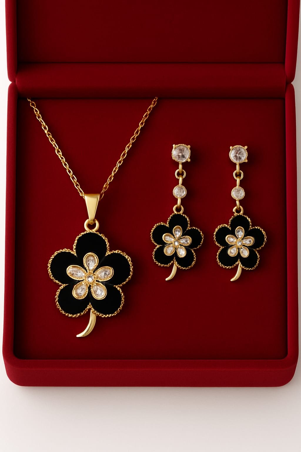 Be the first to review “Black Enamel Four-Leaf Clover Jewelry Set”