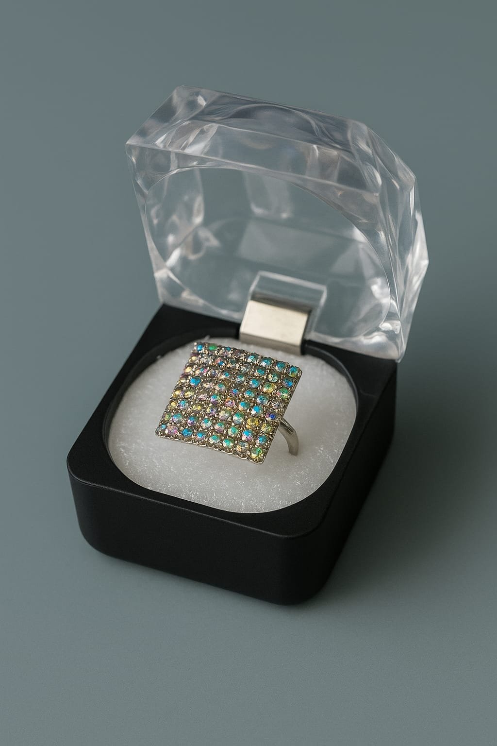 Delicate silver-tone bridal ring featuring a floral halo of sparkling round stones set in a classic cluster—elegant engagement or bridal statement piece that adds timeless sparkle to weddings and special occasions.