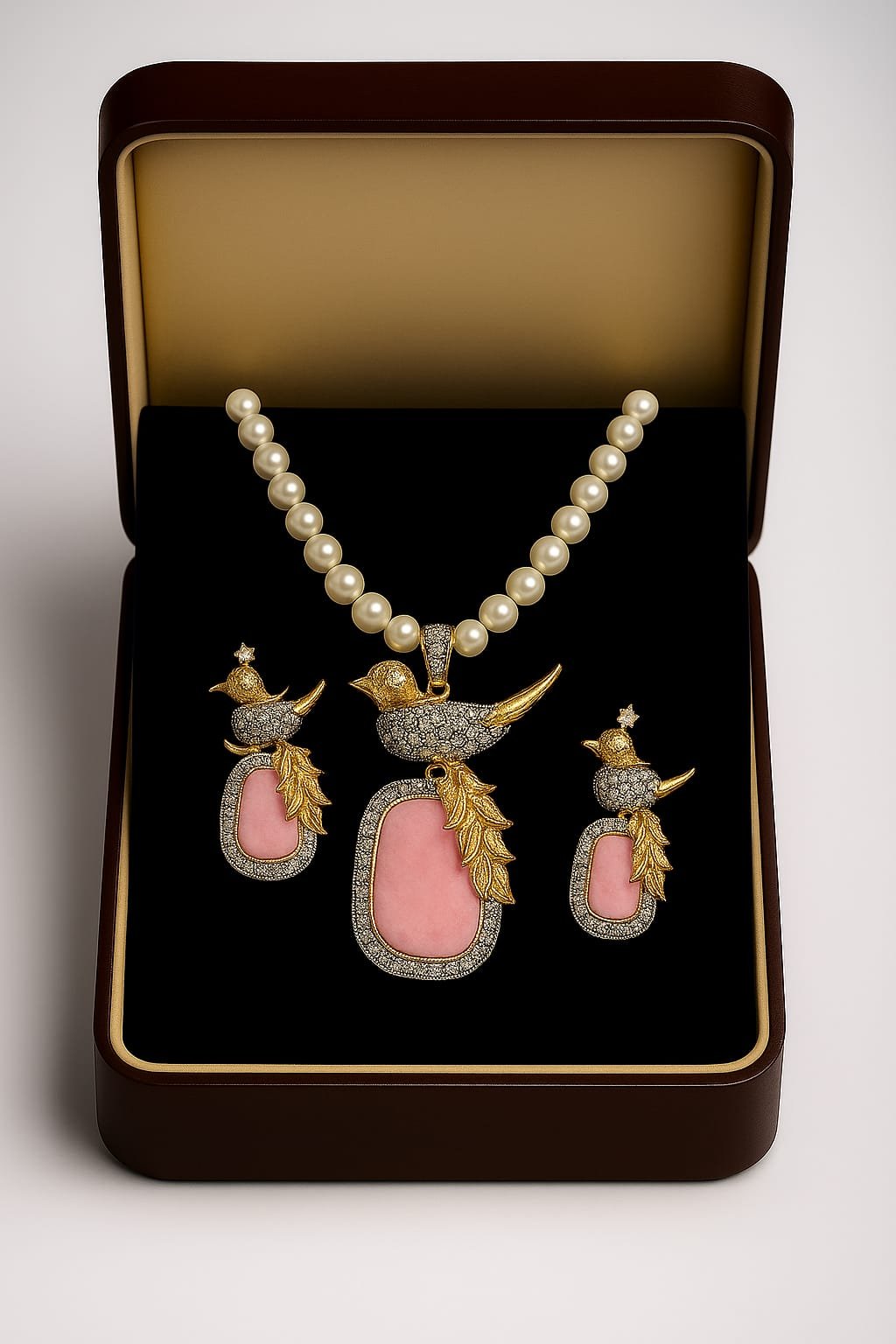 Crystal Charm Lapis Gold-Tone Bird Pendant Set — Add a touch of whimsical elegance to your wardrobe with this stunning lapis-blue pendant set featuring a delicate gold-tone bird motif and sparkling crystal accents. The set includes a beautifully beaded necklace and matching earrings, crafted to complement both casual and formal looks. Lightweight and gift-ready, this piece brings a vibrant pop of color and timeless charm to weddings, parties, and everyday wear.