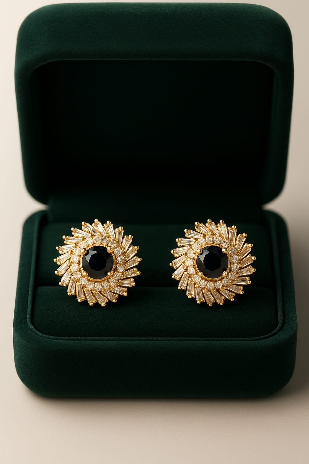 Elegant Gold-Polished Crystal Sunburst Stud Earrings
