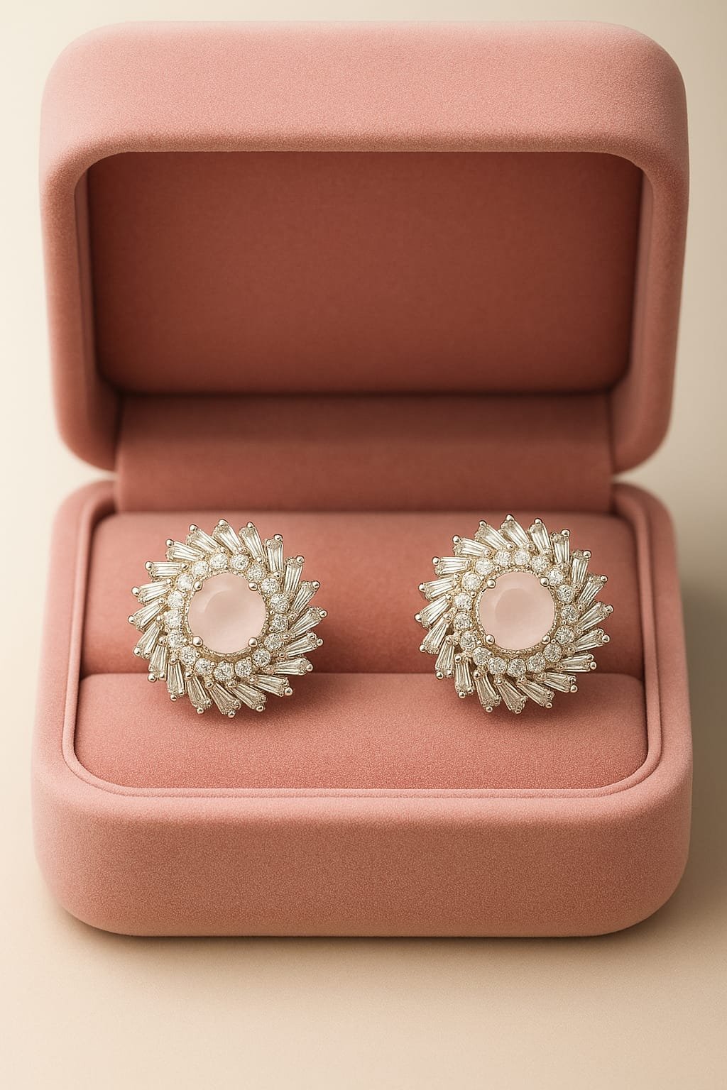 Elegant Gold-Polished Crystal Sunburst Stud Earrings