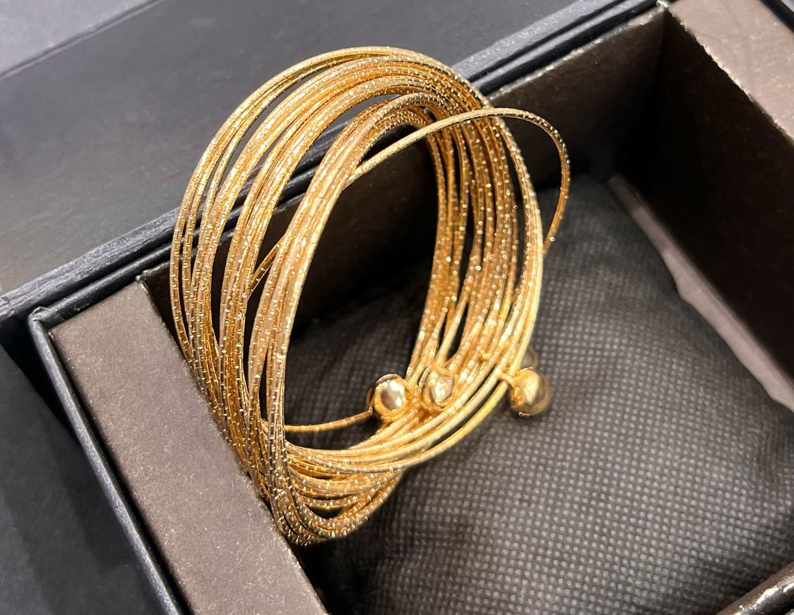 Elegant gold-polished twisted wire coil bangles with minimalist bead accents — lightweight, stackable, and perfect for everyday wear, weddings, and festive occasions.
