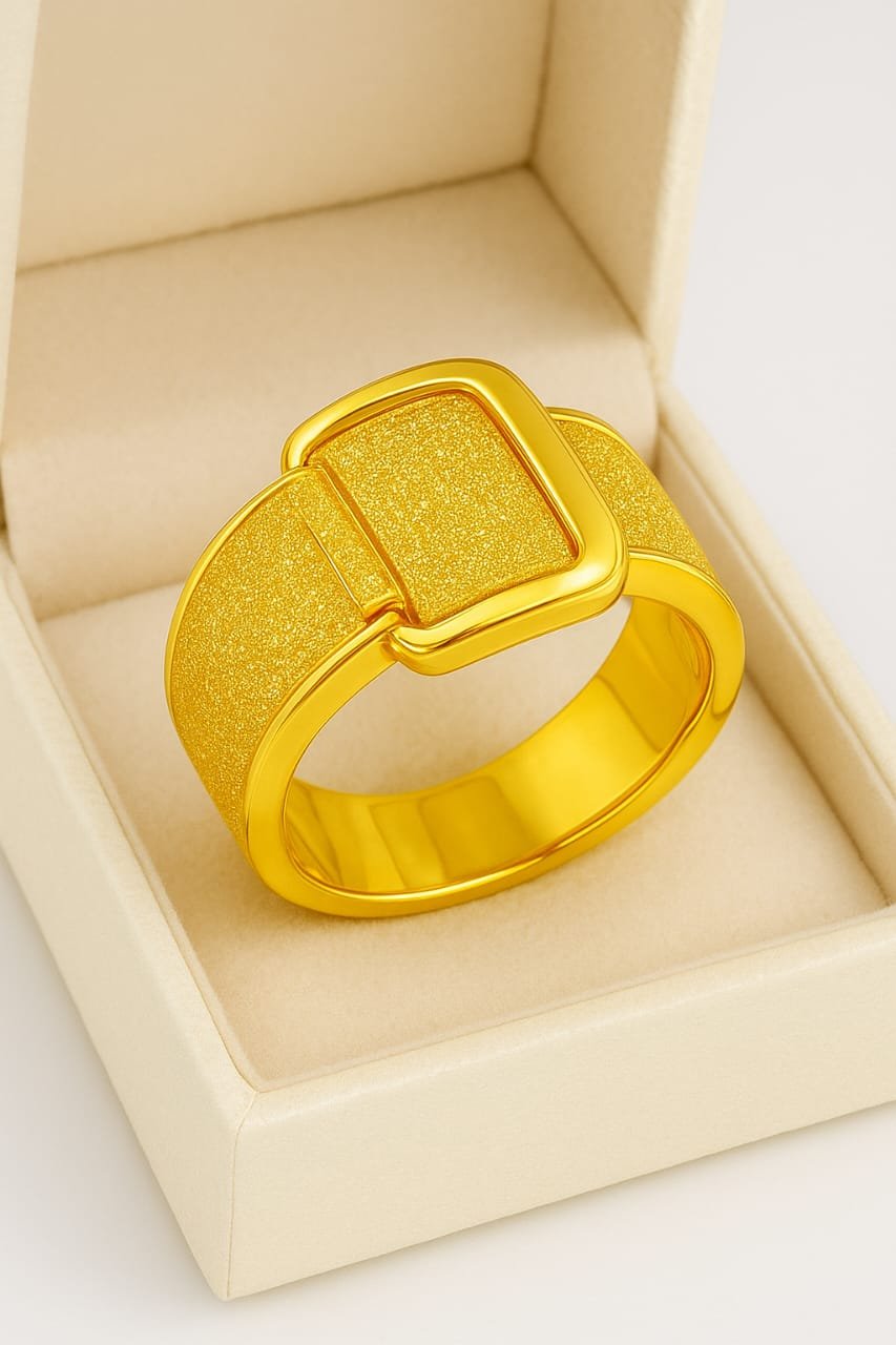 Sleek gold polished belt-style ring with a modern buckle design — perfect for everyday elegance and statement looks.