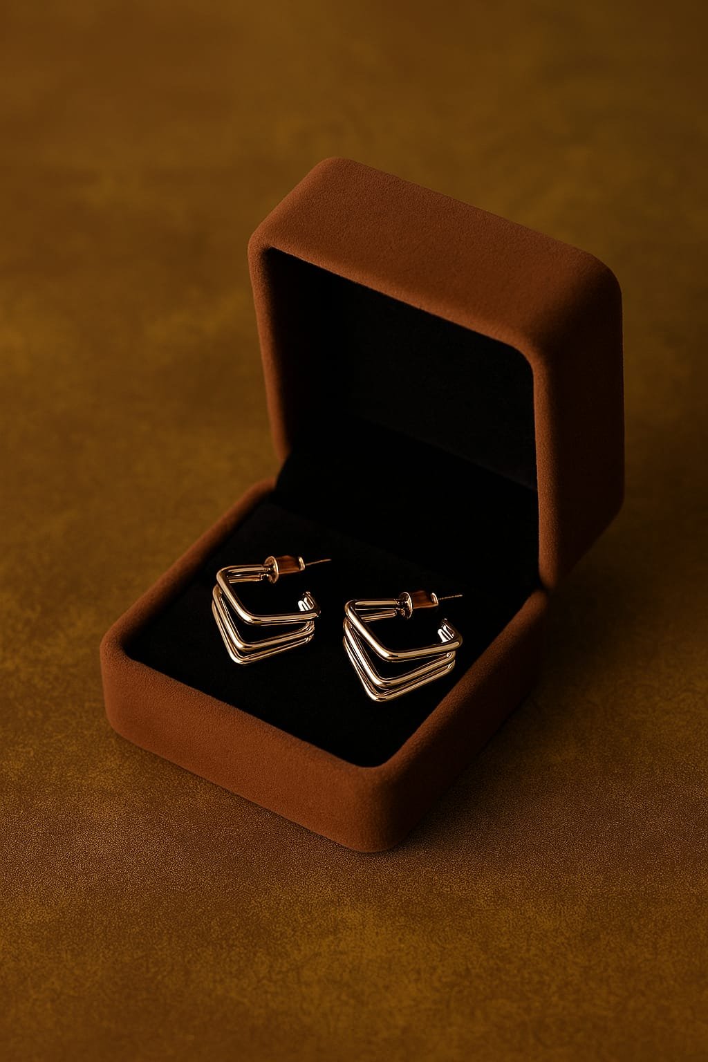 Sleek double-row chevron stud earrings in polished metal with a contemporary stacked design — versatile, lightweight studs that elevate both casual and formal looks.