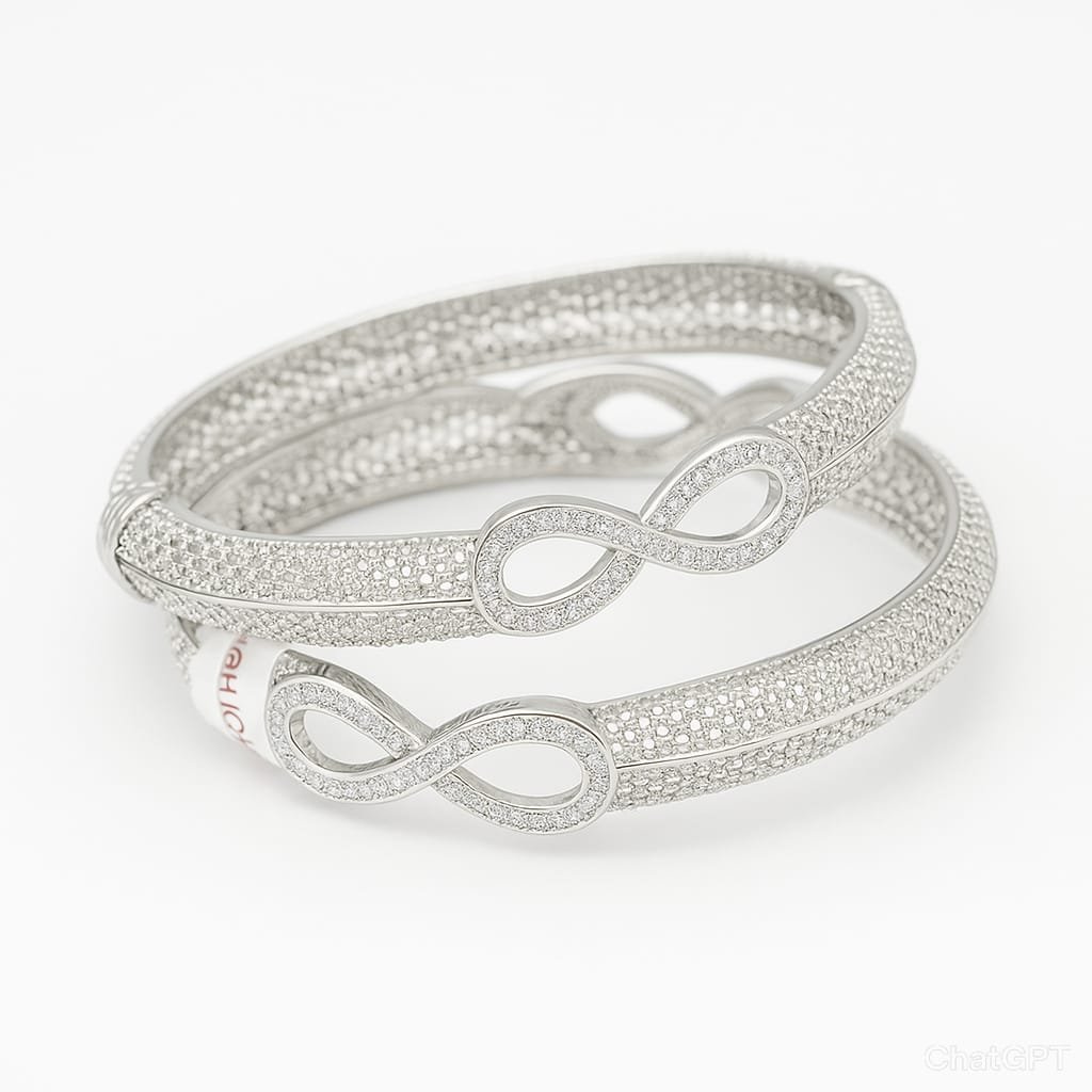 Silver-polished netted bangles featuring elegant infinity motifs — lightweight, sparkling, and perfect for weddings, parties, and festive wear.