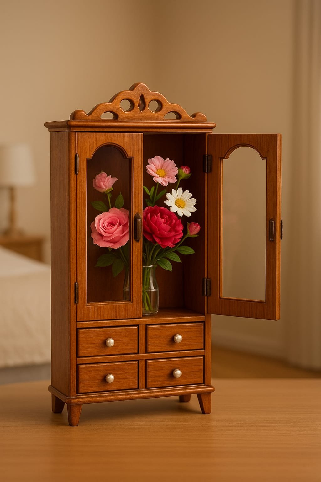 Wooden Miniature Wardrobe with Floral Doors